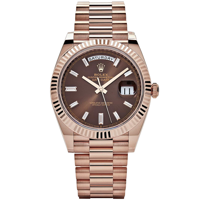 Rolex Day-Date Ref. 228235A Rose Gold Chocolate Dial with Baguette Markers