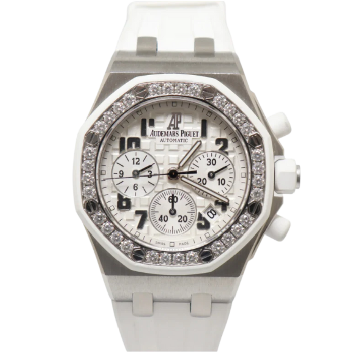 Audemars Piguet Ladies Royal Oak Offshore Ref. 26048SK.ZZ.D010CA.01 37mm White Dial with Diamond Bezel