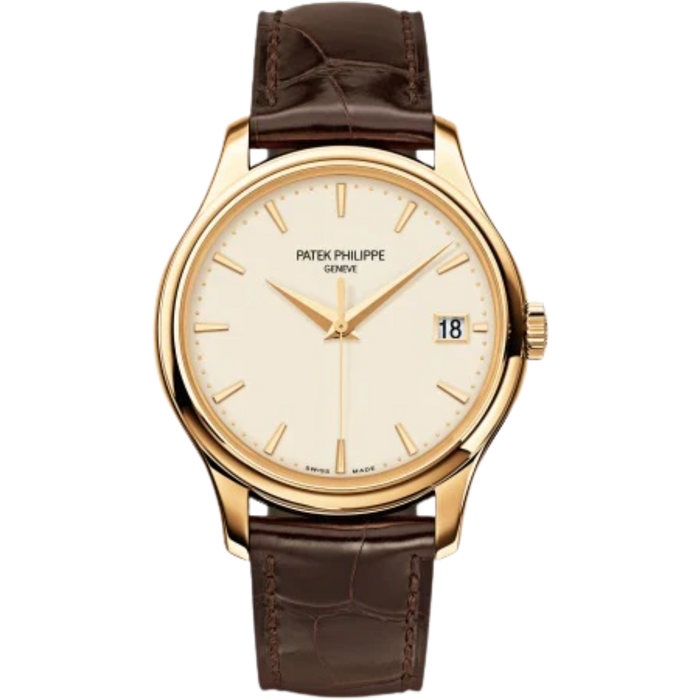 5227J Calatrava 39mm Chocolate Brown Shiny Alligator Strap Ivory Lacquered Dial Yellow Gold Bezel