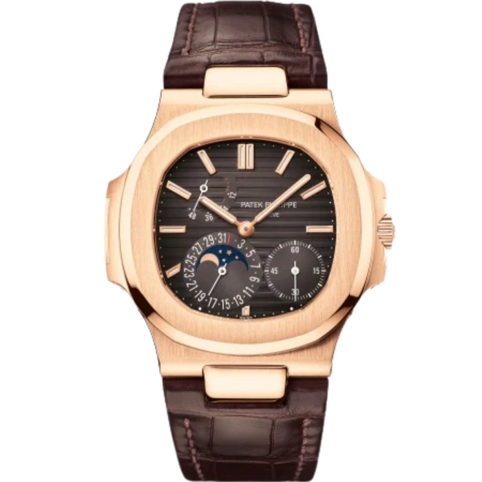 5712R-001 Nautilus 40mm Matte Dark Brown Alligator Strap Black Brown Embossed Dial Rose Gold Bezel