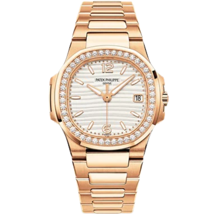 7010/1R Nautilus Rose Gold Bracelet Silvery Opaline Embossed Dial Rose Gold Octagonal Diamond Bezel