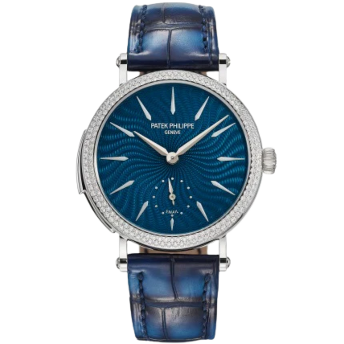 7040/250G Gondolo Ocean Blue Alligator Leather Strap Blue Hand-Guilloched Dial La Flamme Diamond Bezel