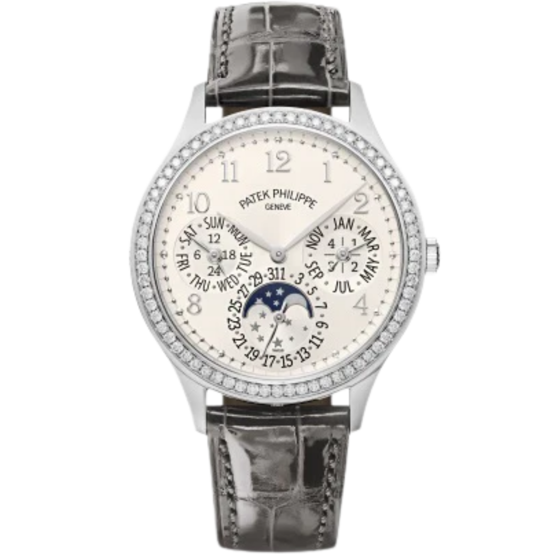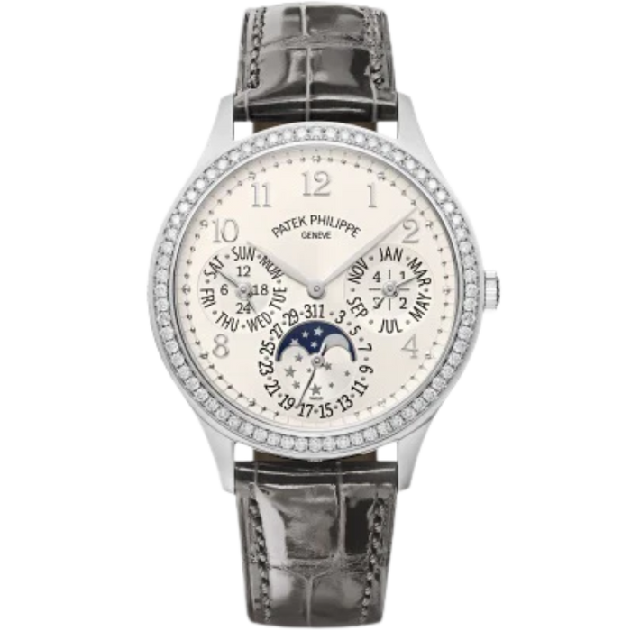 7140G Grand Complications 35.1mm Shiny Gray/Shiny Turquoise Green Alligator Straps Silvery Sunburst Dial Diamond-set White Gold Bezel