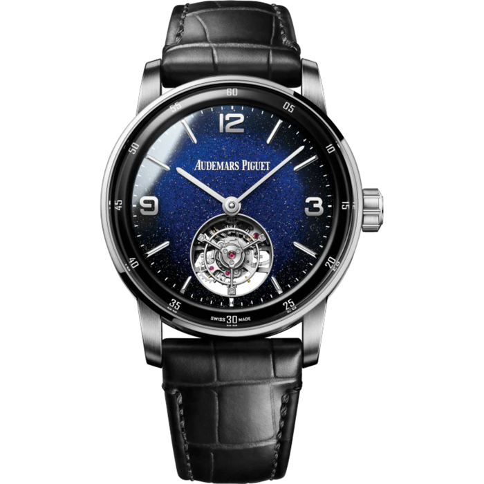 Code 11.59 by Audemars Piguet 41mm Black Alligator Strap Blue Aventurine Enamel Dial Black Lacquered Inner Bezel Selfwinding Flying Tourbillon