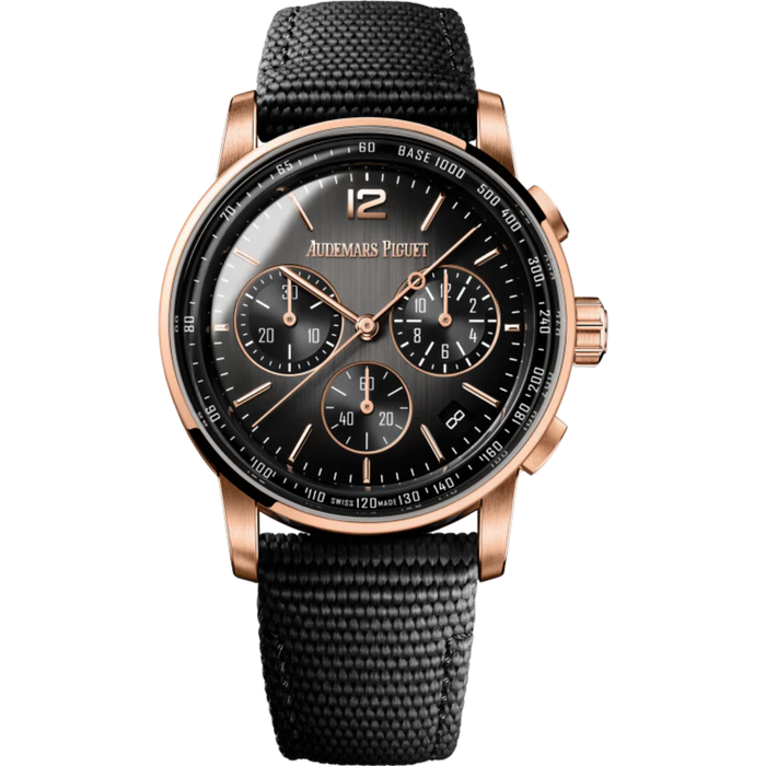 Code 11.59 by Audemars Piguet 41mm Black Rubber-Coated Strap Smoked Grey Dial 18-Carat Pink Gold Bezel Selfwinding Chronograph