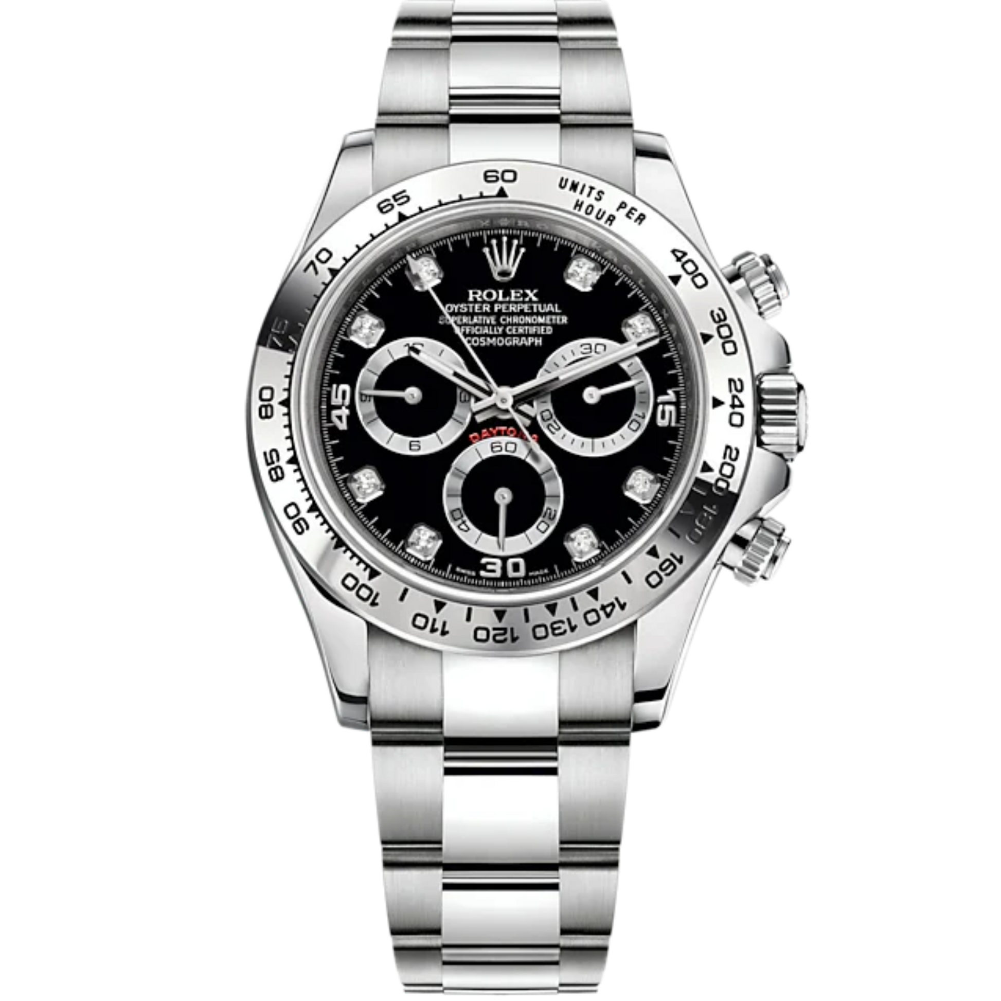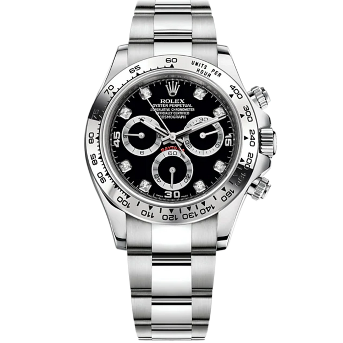 Cosmograph Daytona 40MM Oyster Bracelet Black Diamond-Set Dial 18 CT White Gold Bezel With Engraved Tachymetric Scale