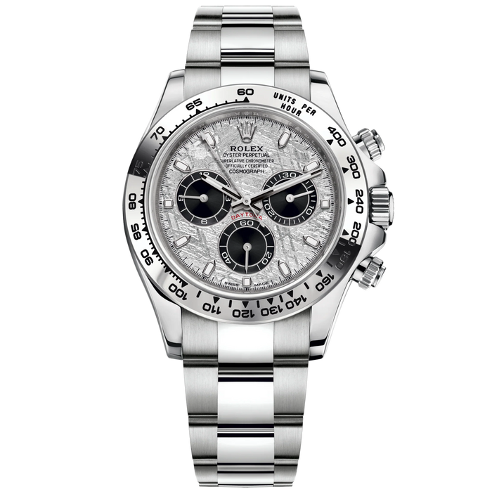 Cosmograph Daytona 40MM Oyster Bracelet Meteorite and Black Dial 18 CT White Gold Bezel With Engraved Tachymetric Scale