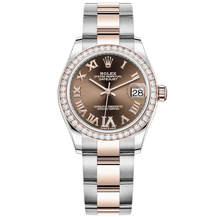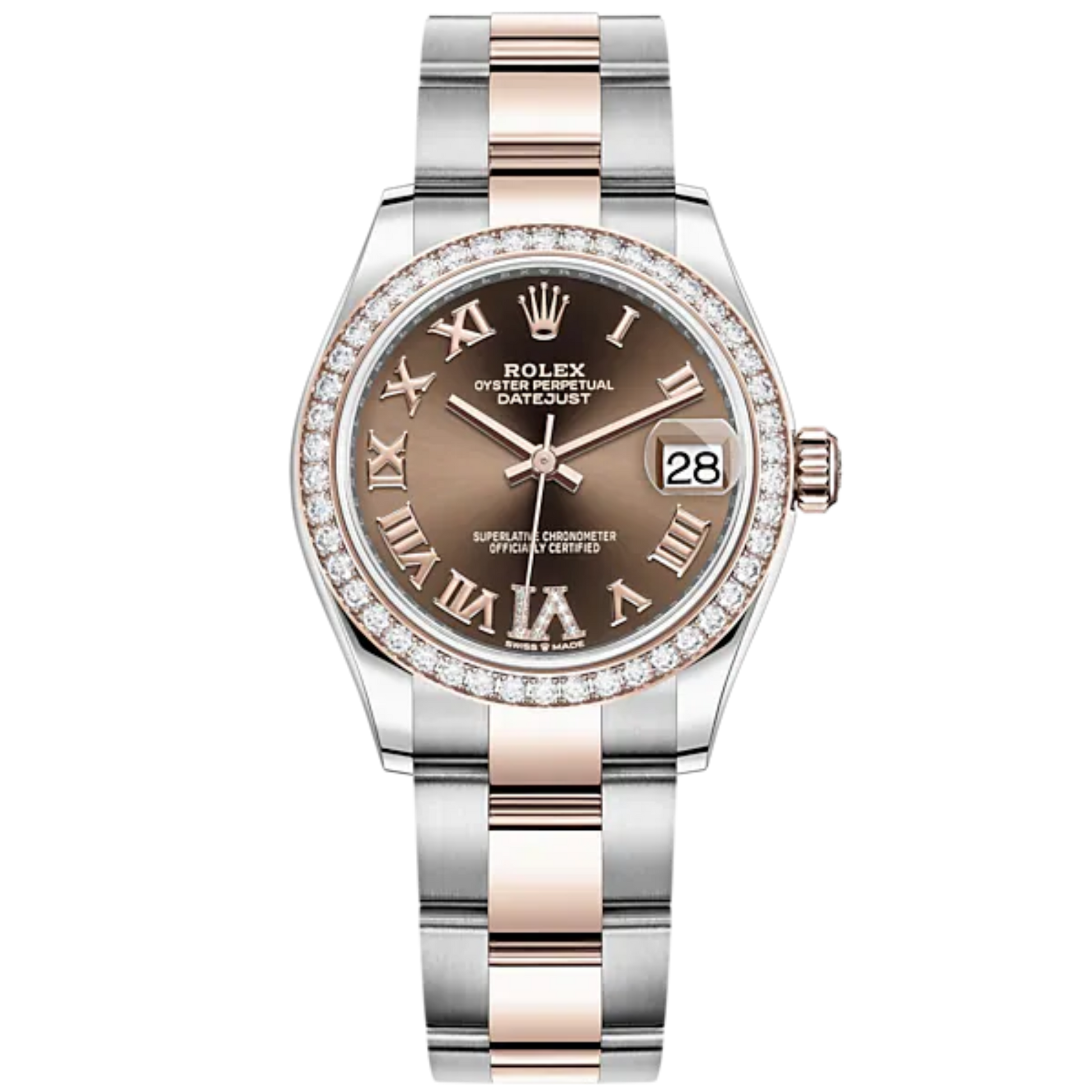 Datejust 31 31mm Oyster Bracelet Oystersteel and Everose Gold with Chocolate Diamond Dial Diamond-Set Bezel
