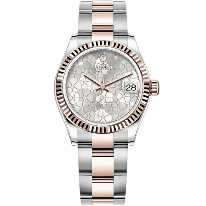 Datejust 31 31mm Oyster Bracelet Oystersteel and Everose Gold with Silver Floral-Motif Diamond-Set Dial Fluted Bezel