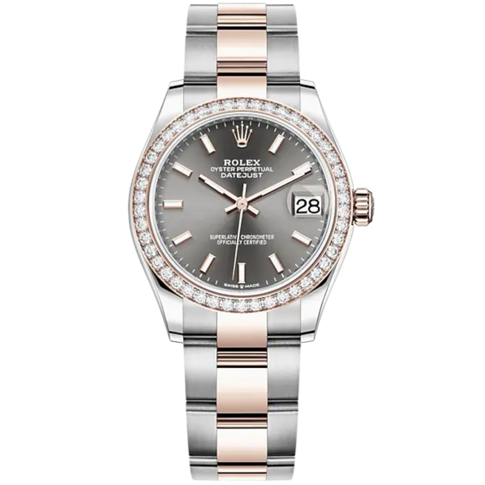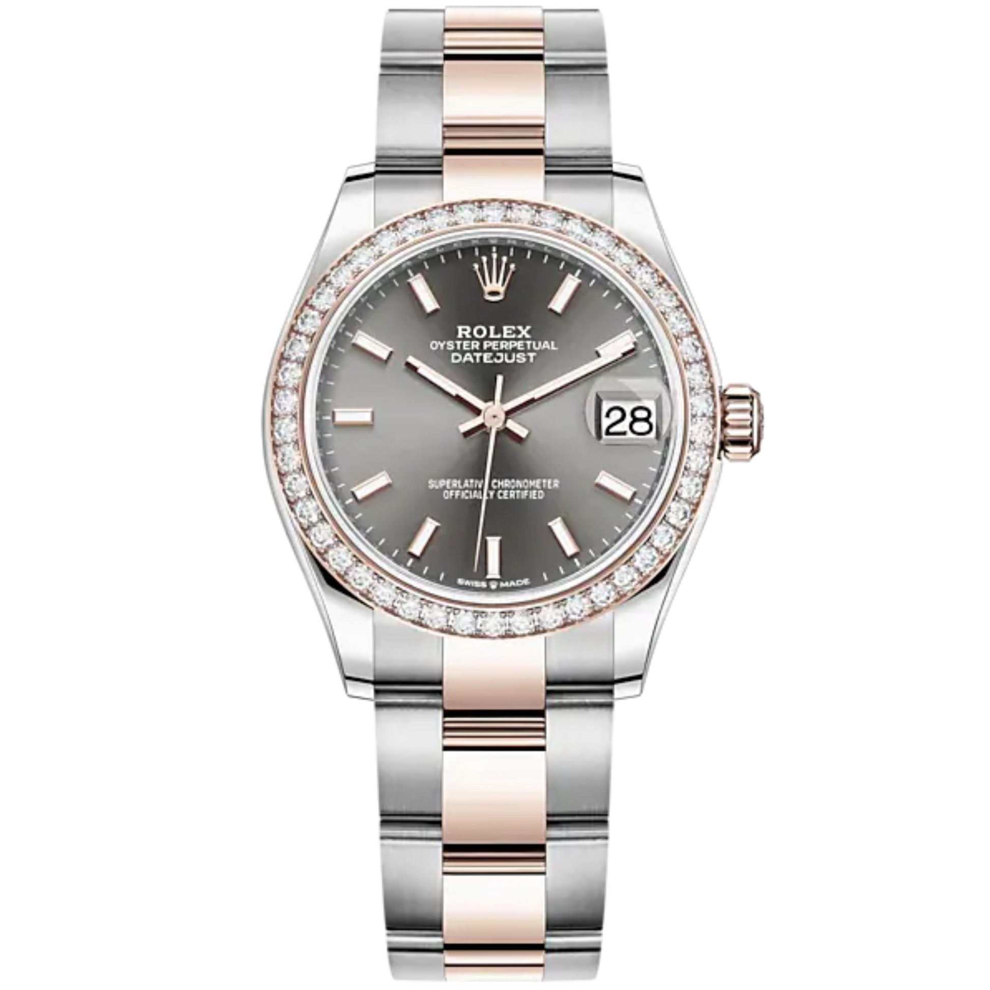 Datejust 31 31mm Oyster Bracelet Oystersteel and Everose Gold with Slate Dial Diamond-Set Bezel