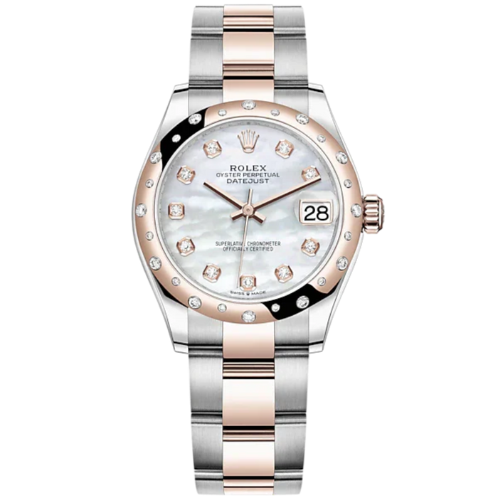 Datejust 31 31mm Oyster Bracelet Oystersteel and Everose Gold with White Mother-Of-Pearl Diamond-Set Dial Diamond-Set Bezel