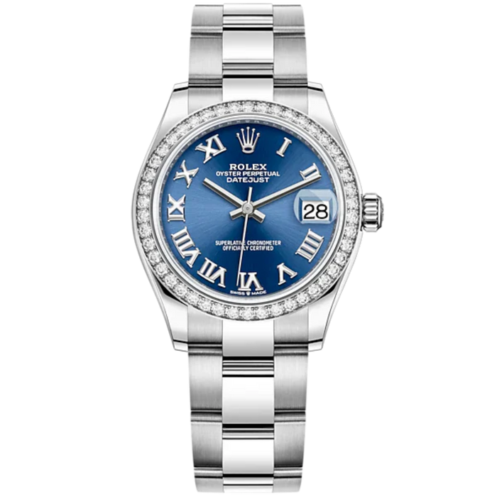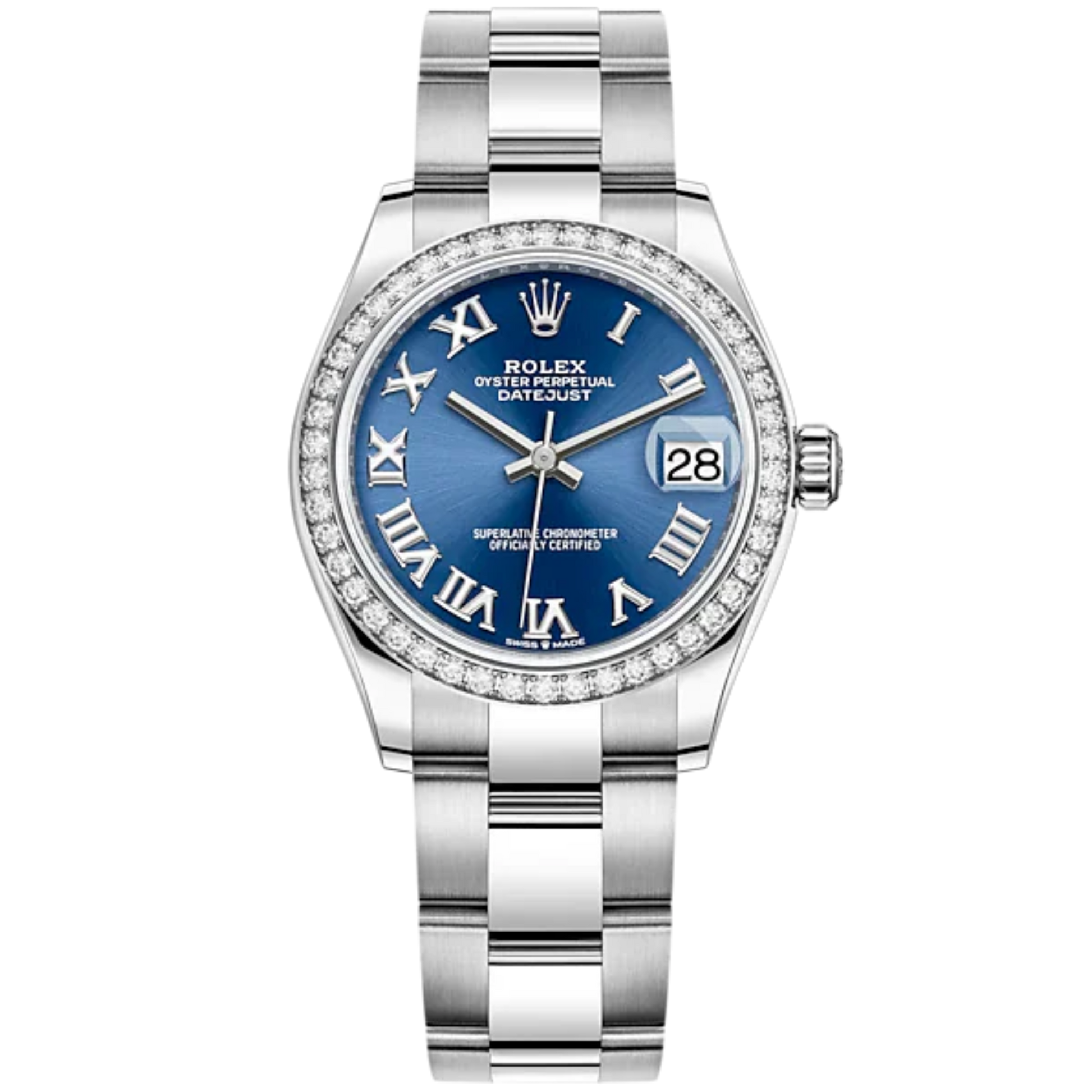 Datejust 31 31mm Oyster Bracelet Oystersteel and White Gold with Bright Blue Dial Diamond-Set Bezel