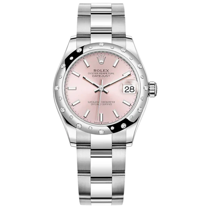 Datejust 31 31mm Oyster Bracelet Oystersteel and White Gold with Pink Dial Diamond-Set Bezel