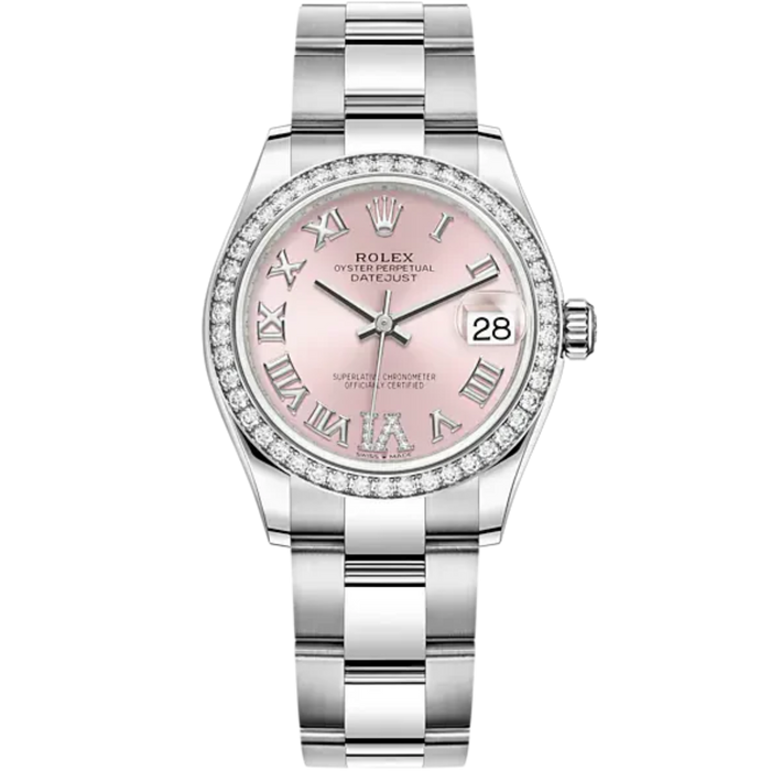 Datejust 31 31mm Oyster Bracelet Oystersteel and White Gold with Pink Diamond Dial Diamond-Set Bezel