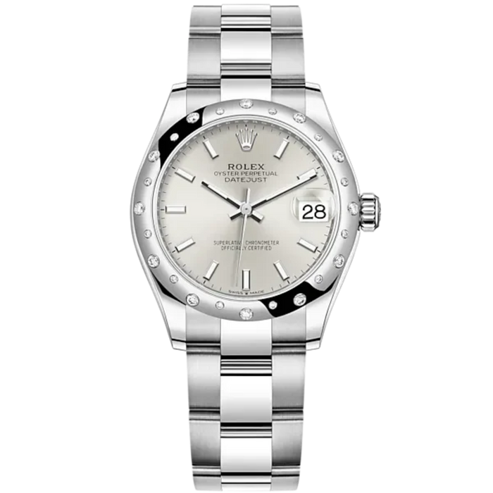 Datejust 31 31mm Oyster Bracelet Oystersteel and White Gold with Silver Dial Diamond-Set Bezel