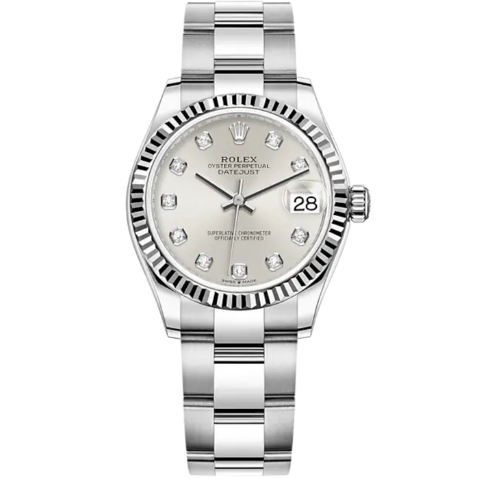 Datejust 31 31mm Oyster Bracelet Oystersteel and White Gold with Silver Diamond-Set Dial Fluted Bezel