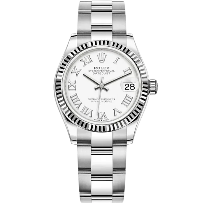 Datejust 31 31mm Oyster Bracelet Oystersteel and White Gold with White Dial Fluted Bezel