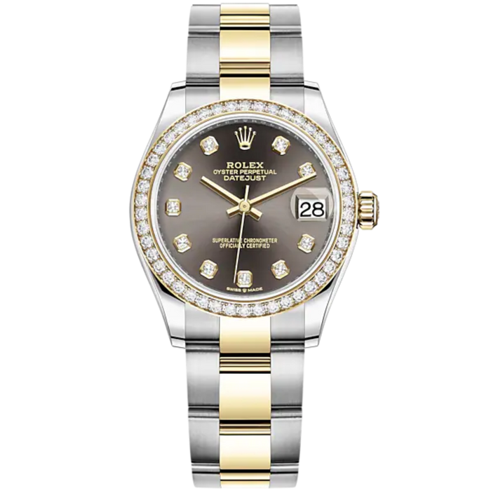 Datejust 31 31mm Oyster Bracelet Oystersteel and Yellow Gold with Dark Gray Diamond-Set Dial Diamond-Set Bezel
