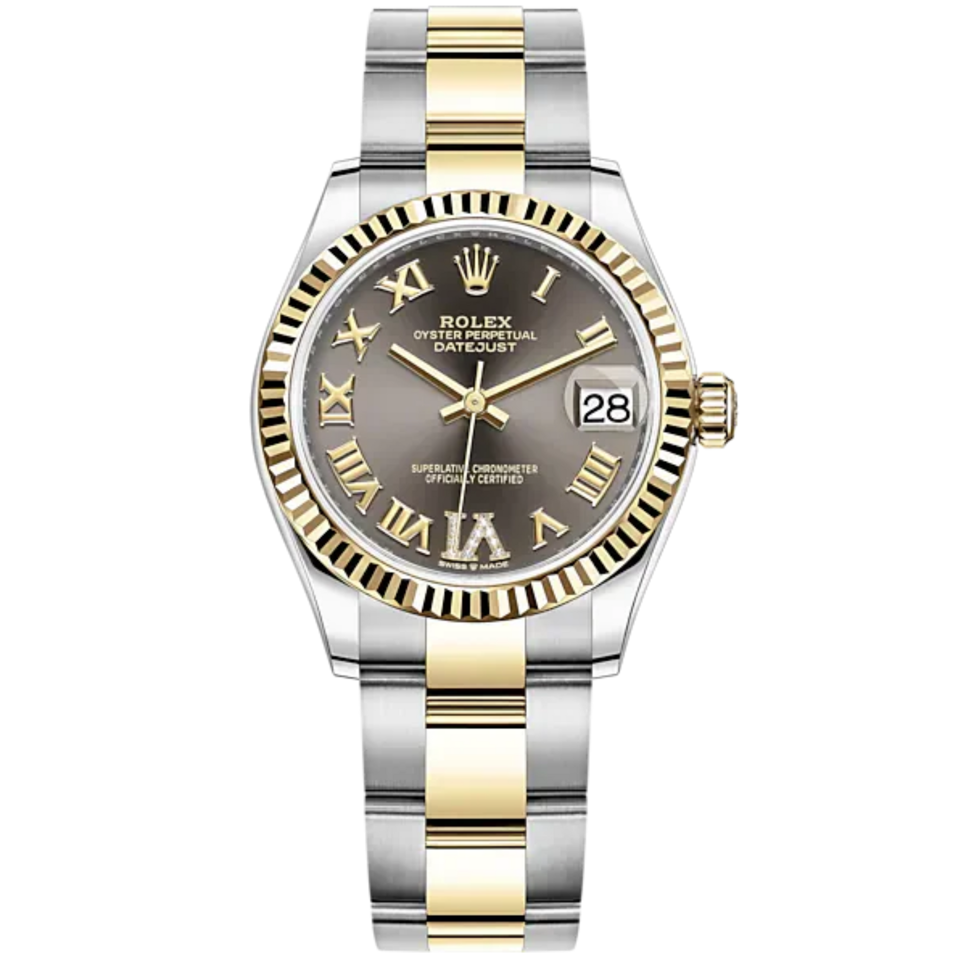 Datejust 31 31mm Oyster Bracelet Oystersteel and Yellow Gold with Dark Grey Diamond Dial Fluted Bezel