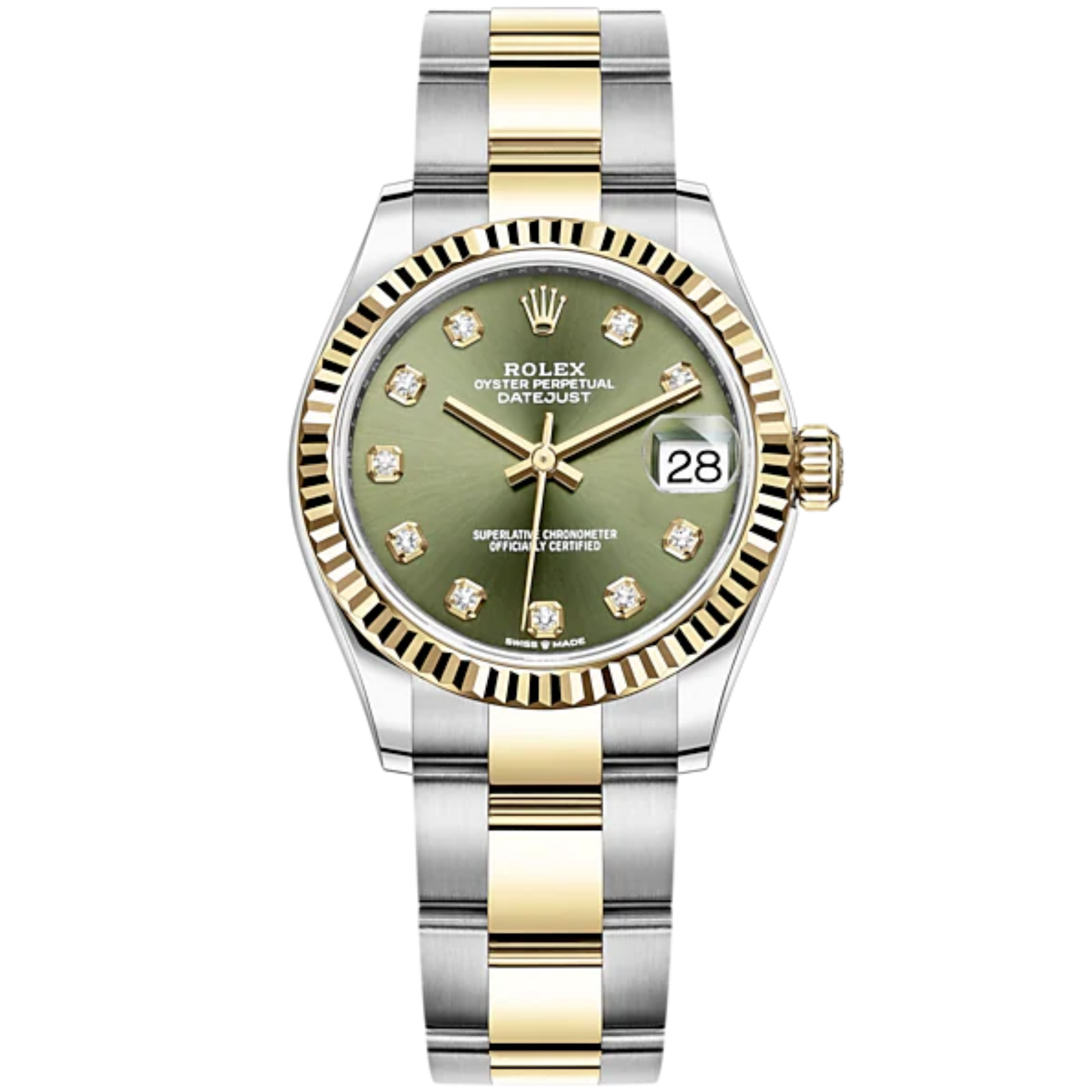 Datejust 31 31mm Oyster Bracelet Oystersteel and Yellow Gold With Olive-Green Diamond-Set Dial Fluted Bezel