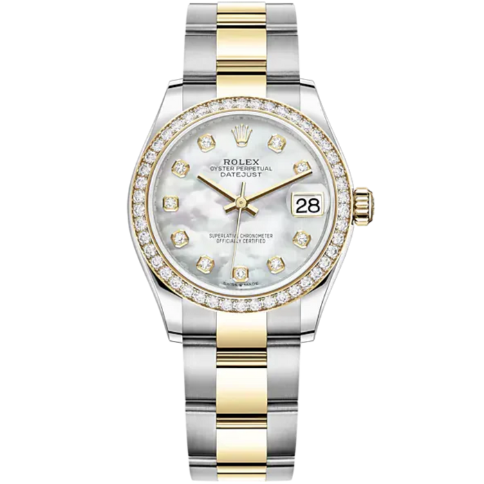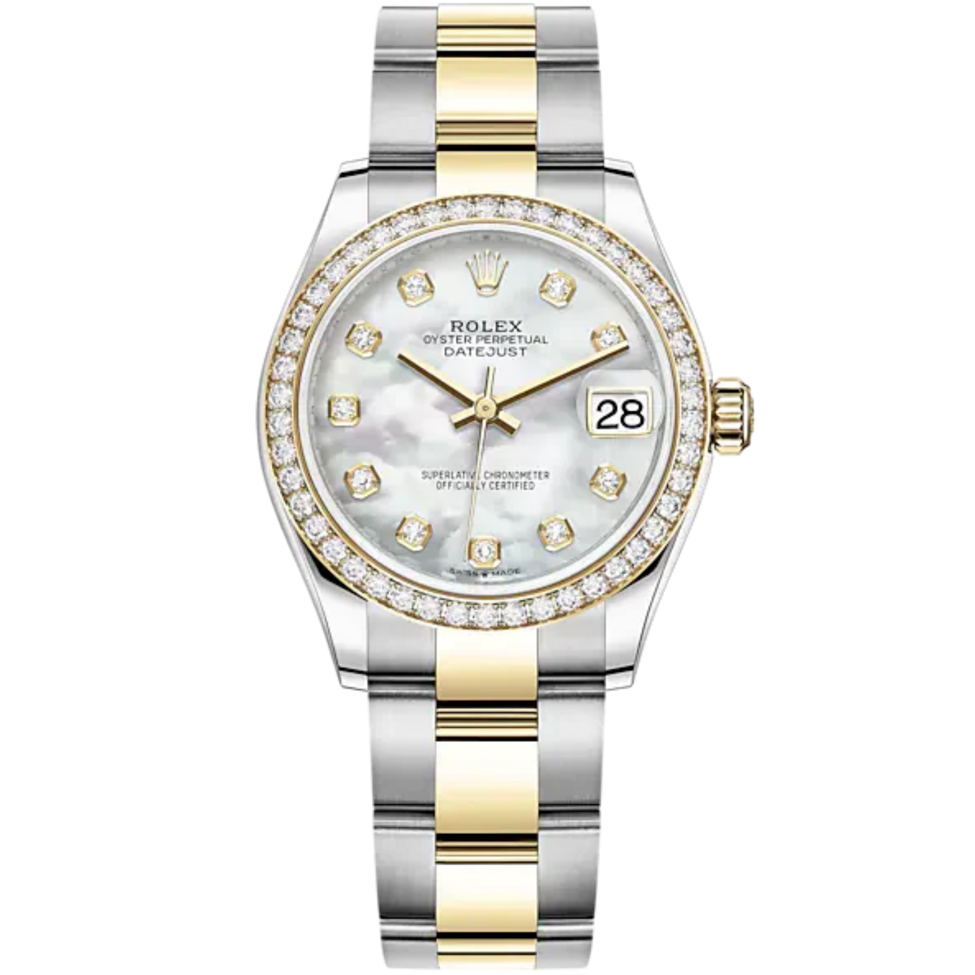 Datejust 31 31mm Oyster Bracelet Oystersteel and Yellow Gold with White Mother-Of-Pearl Diamond-Set Diamond-Set Bezel