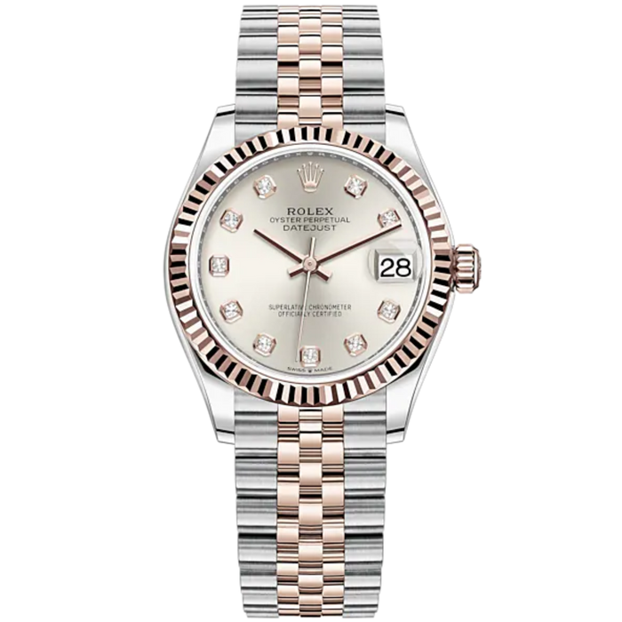 Datejust 31 31mm Jubilee Bracelet Oystersteel and Everose Gold Silver Diamond-Set Dial Fluted Bezel