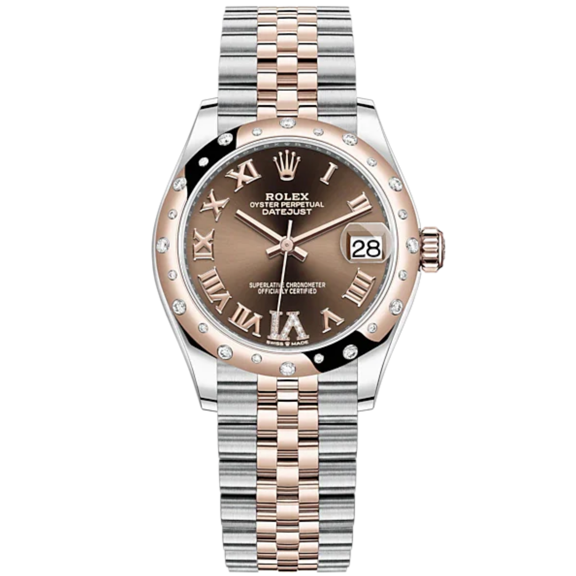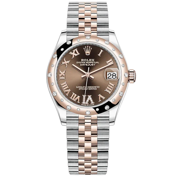 Datejust 31 31mm Jubilee Bracelet Oystersteel and Everose Gold with Chocolate Diamond Smooth Roman Dial Diamond-Set Bezel