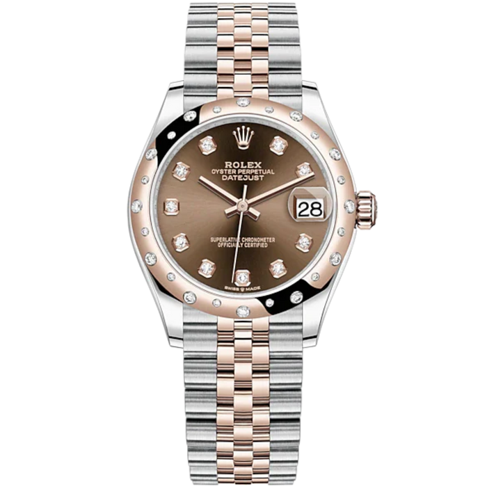 Datejust 31 31mm Oyster Jubilee Bracelet Oystersteel and Everose Gold with Chocolate Diamond-Set Dial Diamond-Set Bezel