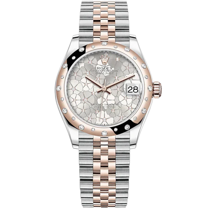 Datejust 31 31mm Jubilee Bracelet Oystersteel and Everose Gold with Silver Floral-Motif Diamond-Set Dial Diamond-Set Bezel