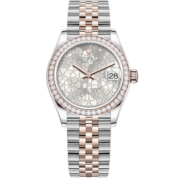 Datejust 31 31mm Jubilee Bracelet Oystersteel and Everose Gold with Silver Floral-Motif Diamond-Set Dial Diamond-Set Bezel
