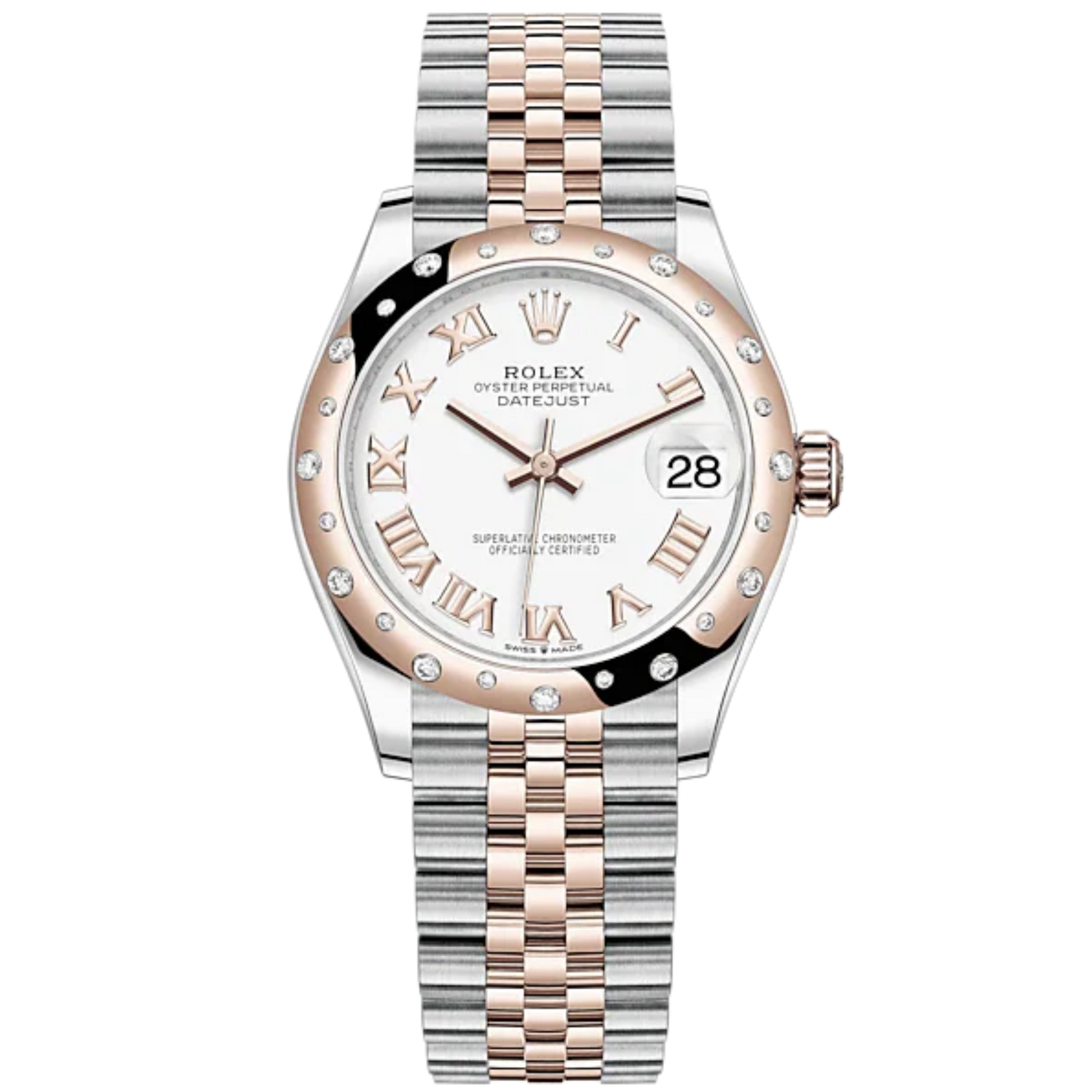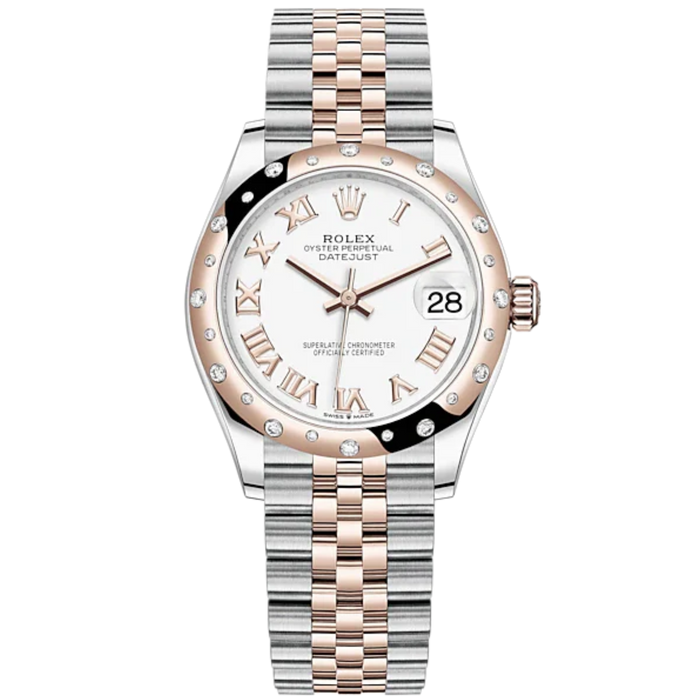 Datejust 31 31mm Jubilee Bracelet Oystersteel and Everose Gold with White Dial Diamond-Set Bezel