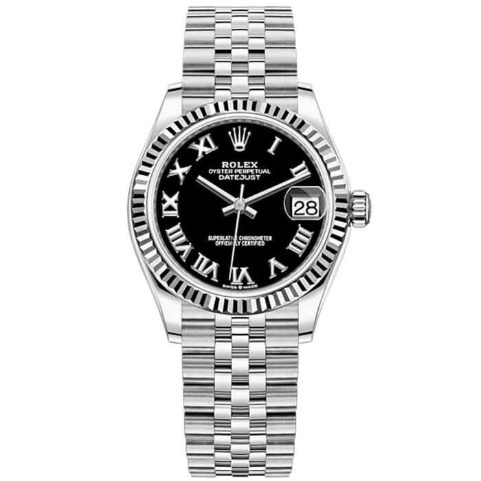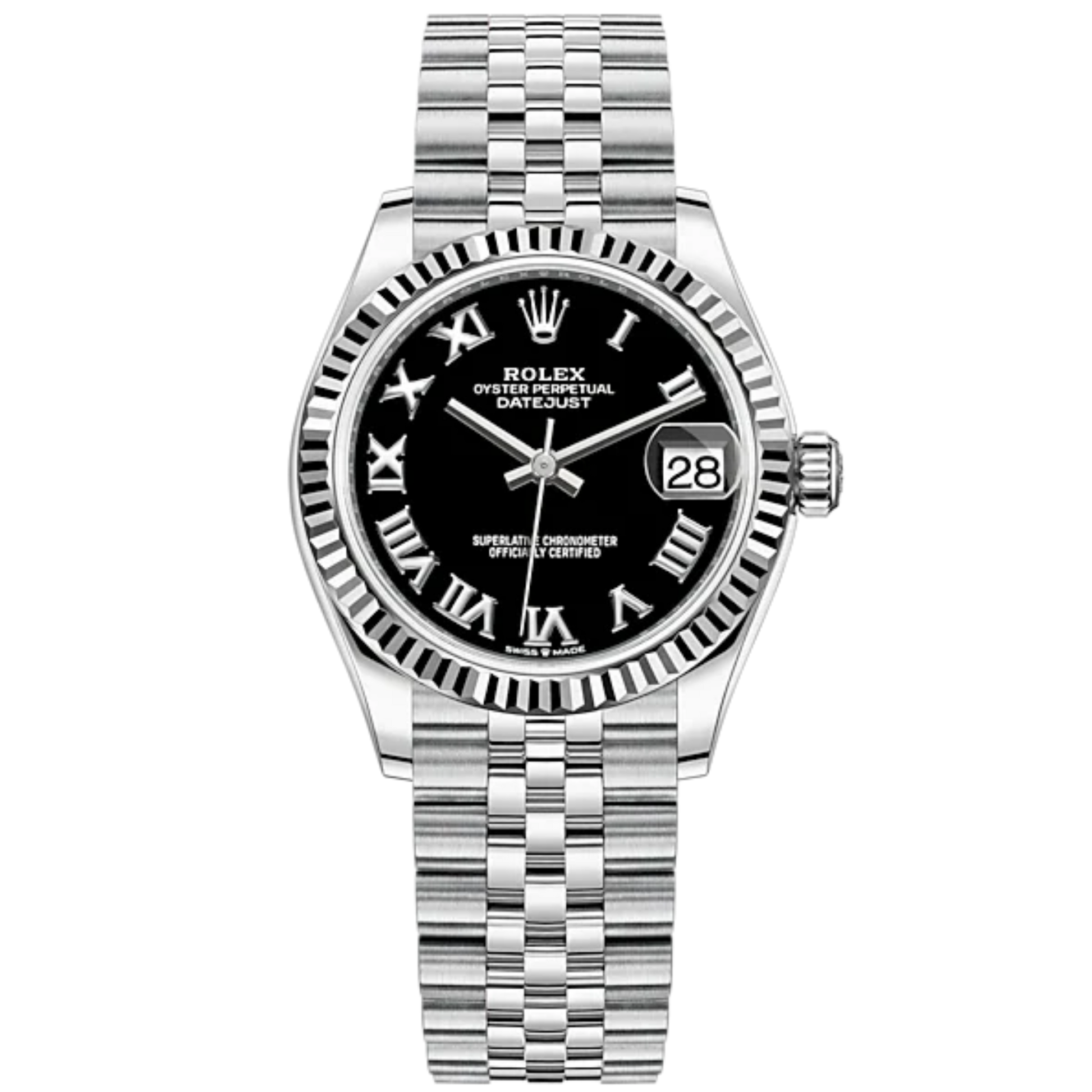 Datejust 31 31mm Jubilee Bracelet Oystersteel and White Gold with Bright Black Dial Fluted Bezel