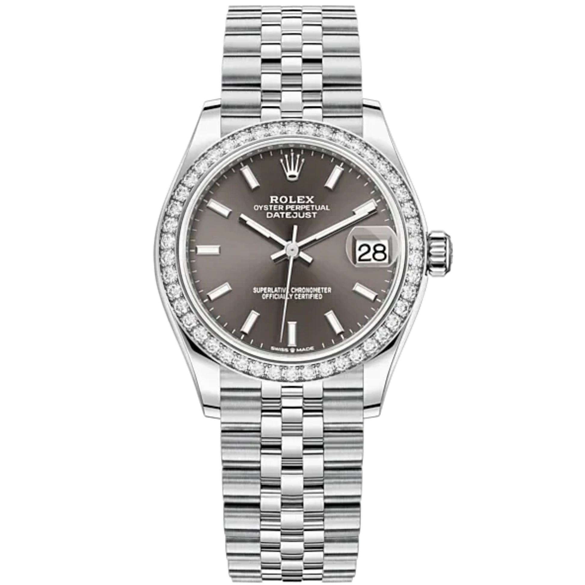 Datejust 31 31mm Jubilee Bracelet Oystersteel and White Gold with Dark Grey Dial Diamond-Set Bezel