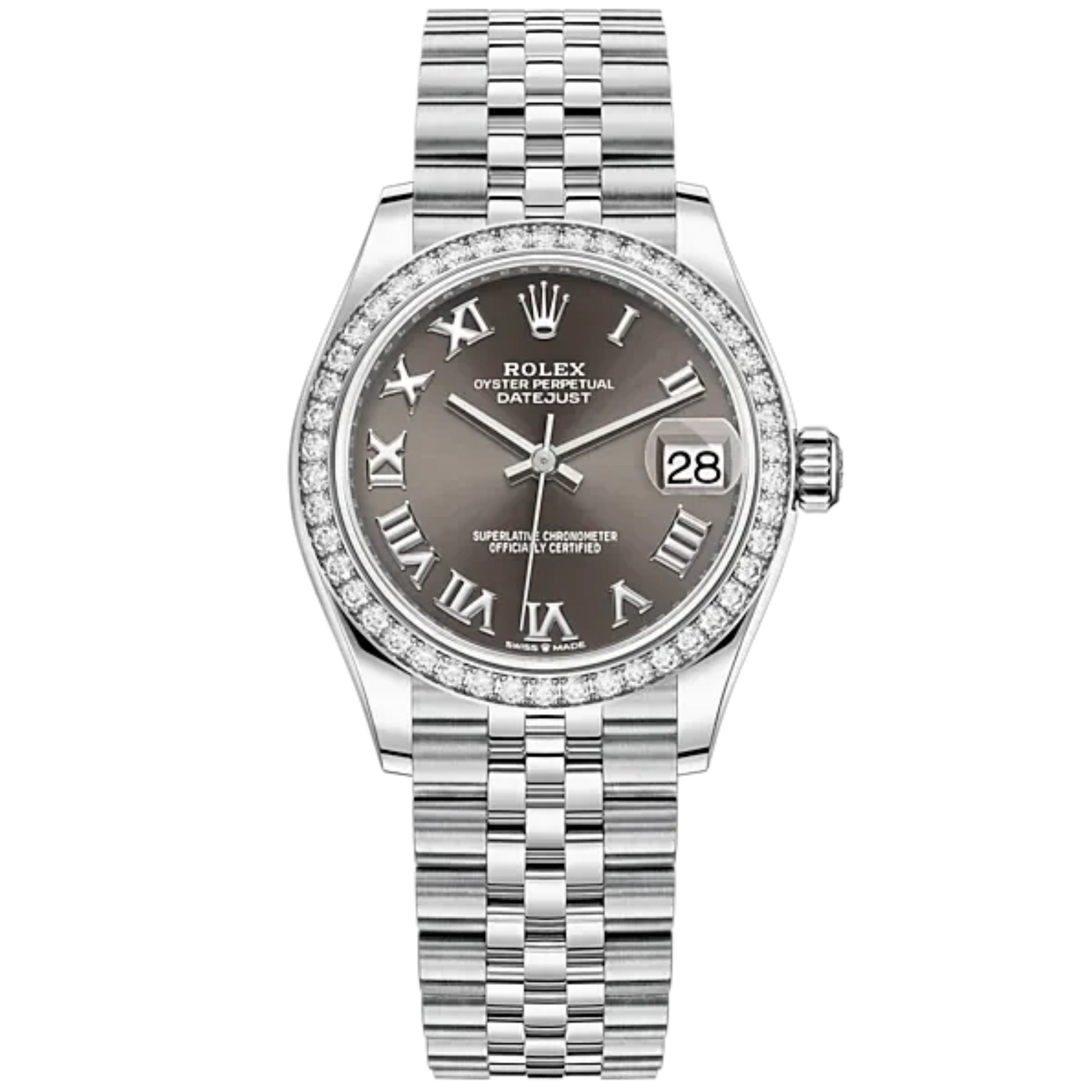 Datejust 31 31mm Jubilee Bracelet Oystersteel and White Gold with Dark Grey Roman Dial Diamond-Set Bezel