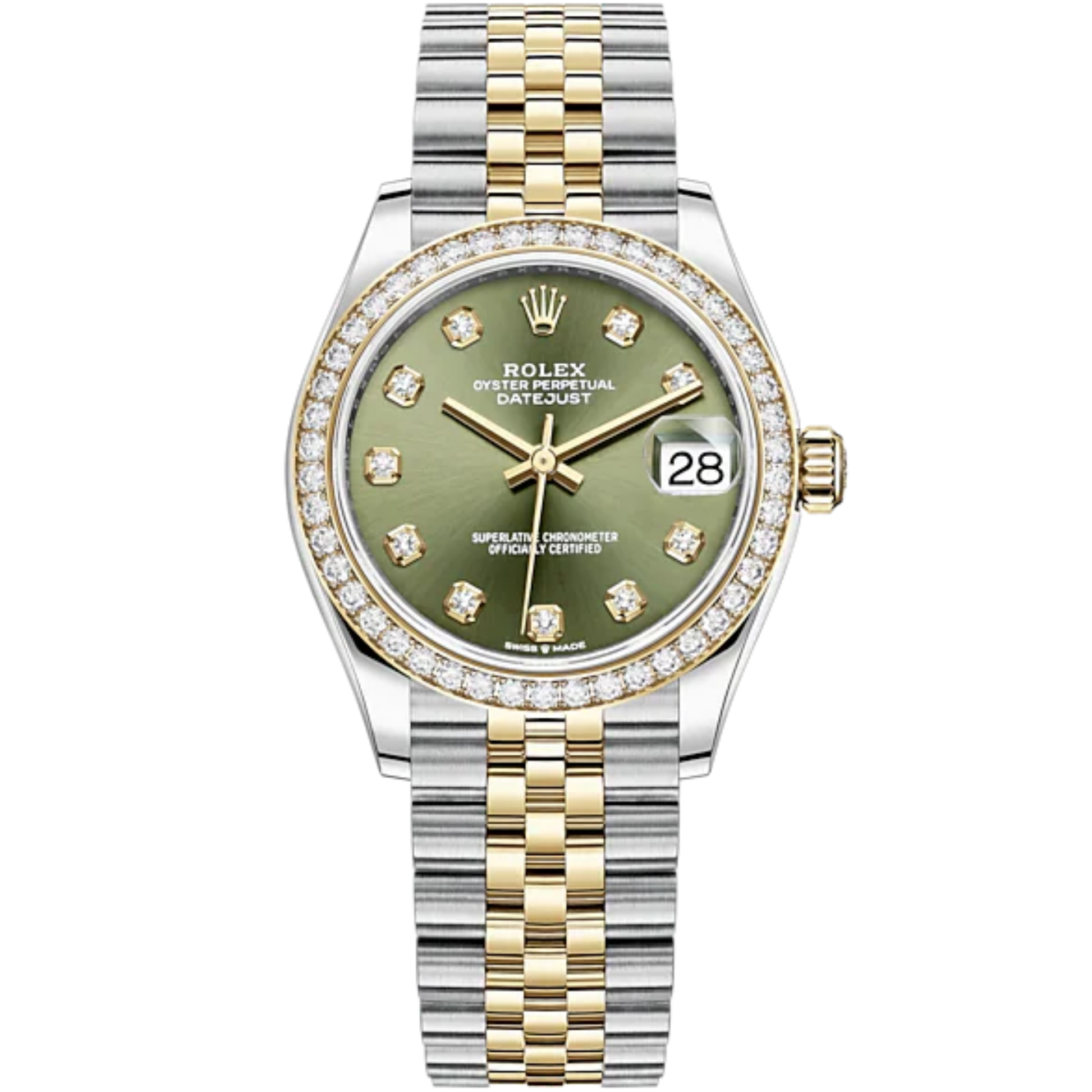 Datejust 31 31mm Jubilee Bracelet Oystersteel and Yellow Gold with Olive-Green Diamond-Set Dial Diamond-Set Bezel