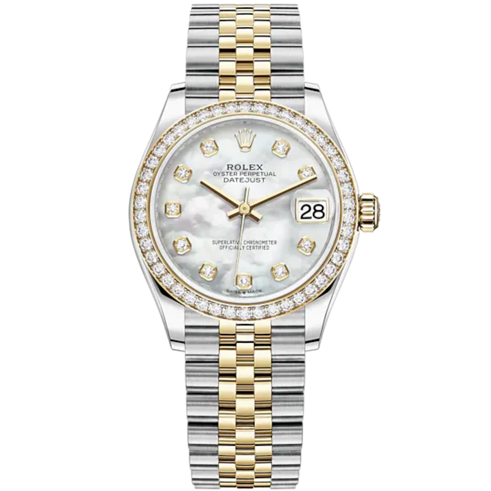 Datejust 31 31mm Jubilee Bracelet Oystersteel and Yellow Gold with White Mother-Of-Pearl Dial Diamond-Set Bezel