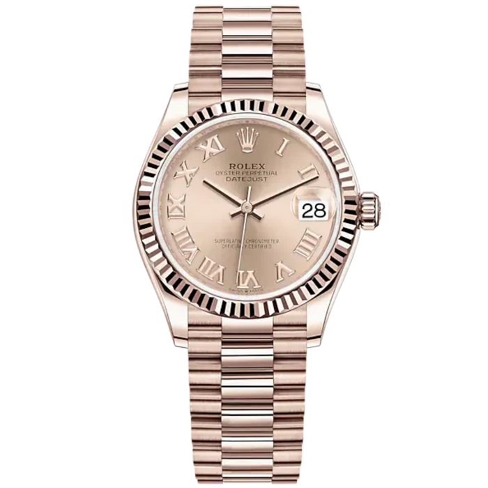 Datejust 31 31mm President Bracelet and 18 CT Everose Gold with Rosé-Colour Dial Fluted Bezel