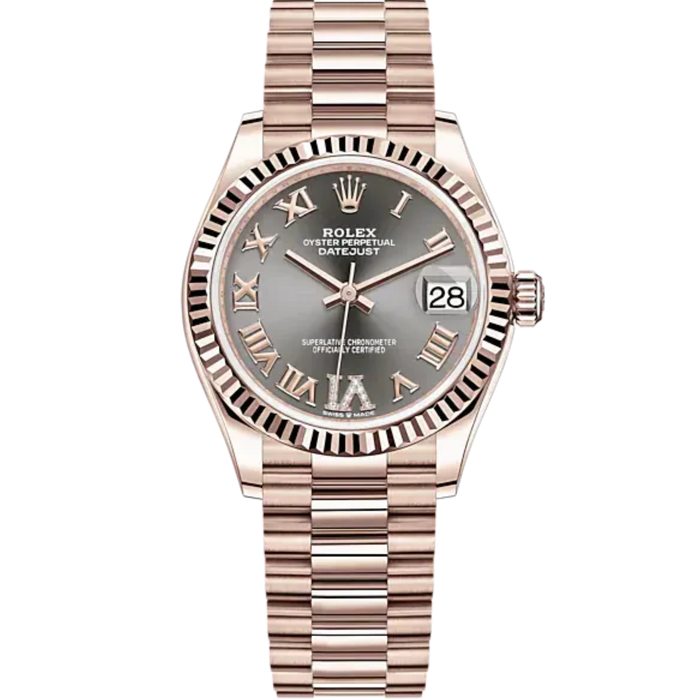Datejust 31 31mm President Bracelet and 18 CT Everose Gold with Slate Diamond Dial Fluted Bezel