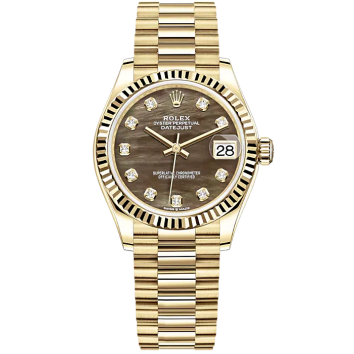 Datejust 31 31mm President Bracelet and 18 CT Yellow Gold with Black Mother-Of-Pearl Diamond-Set Dial Fluted Bezel