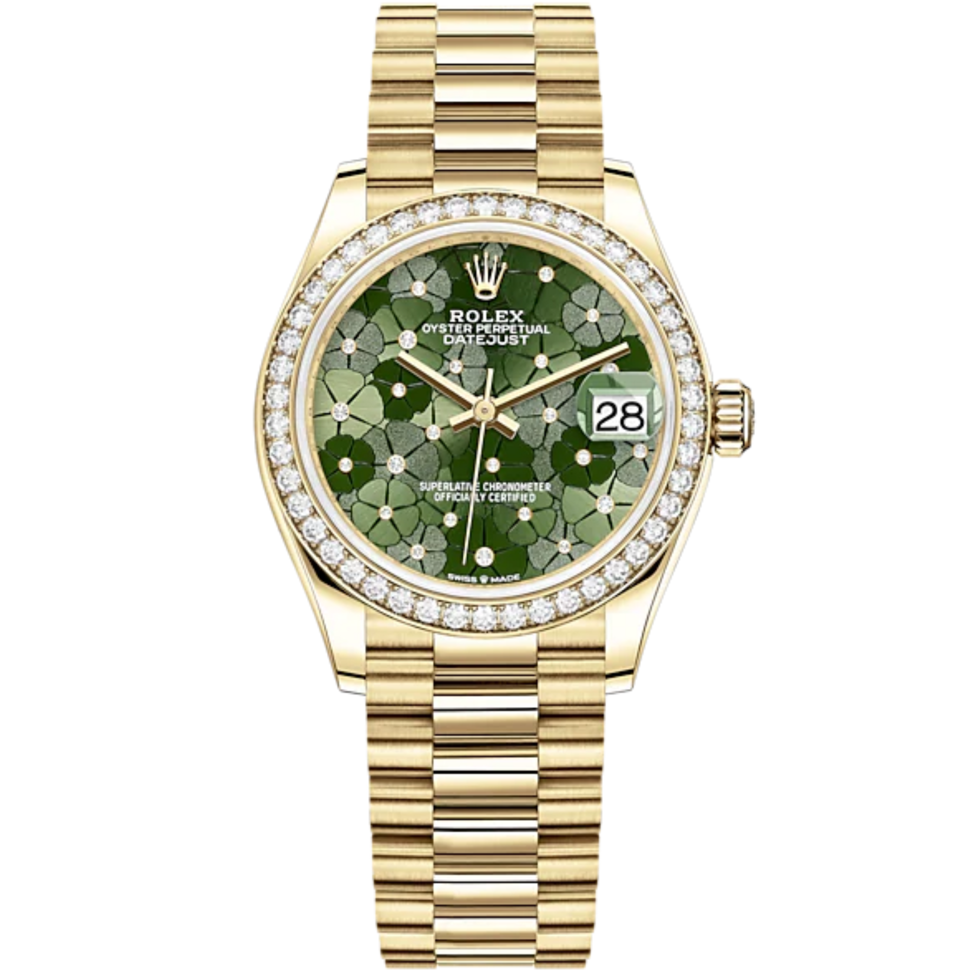 Datejust 31 31mm President Bracelet and 18 CT Yellow Gold with Olive-Green Floral-Motif Diamond Set Dial Diamond-Set Bezel