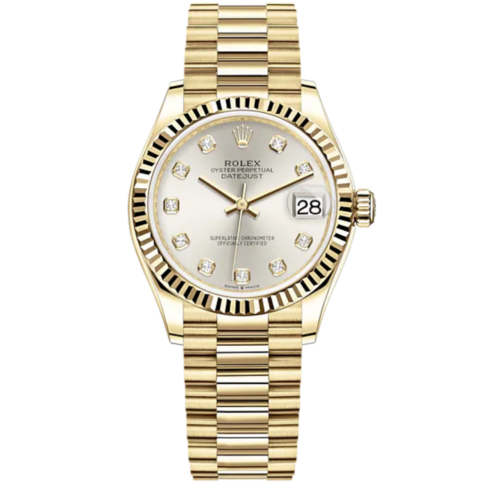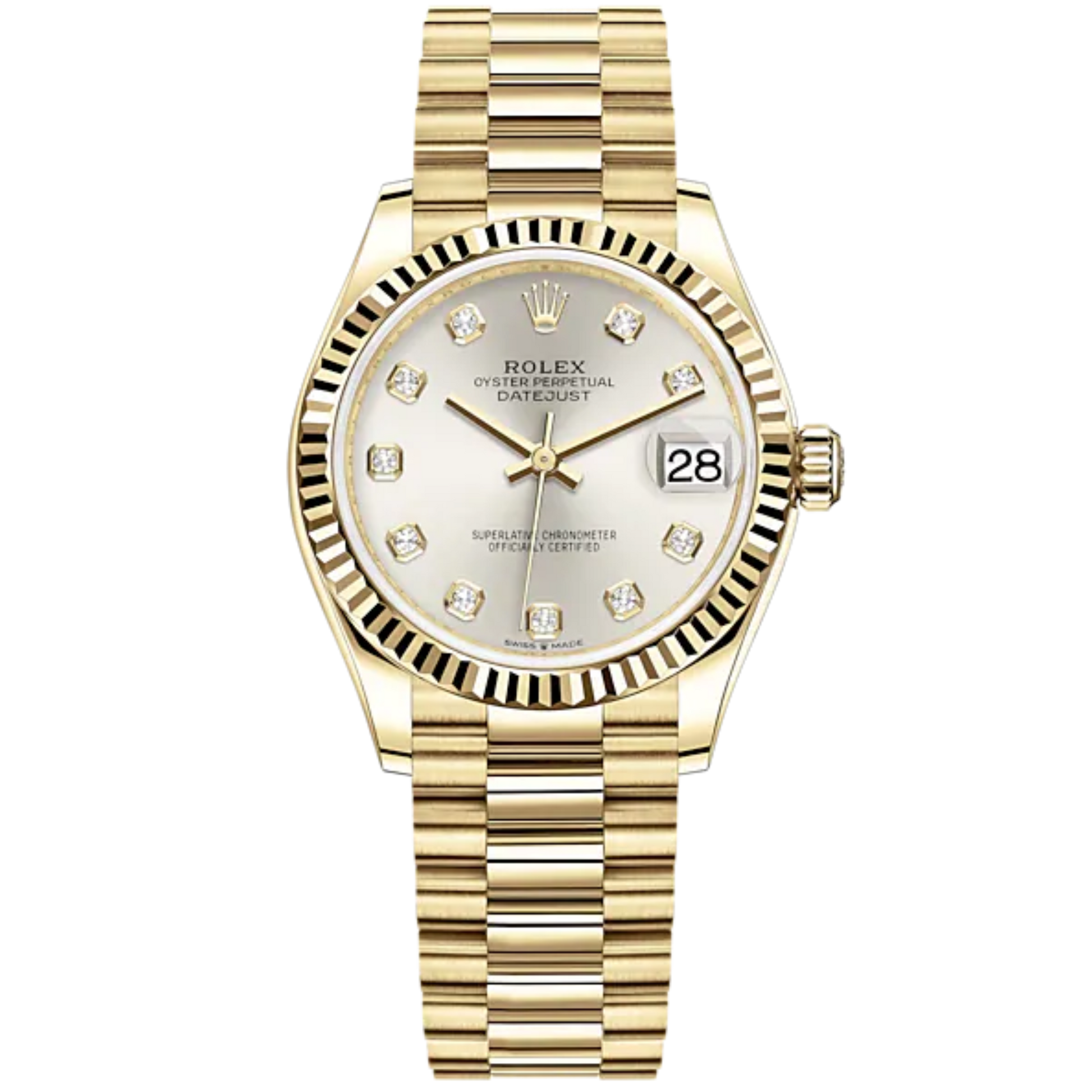 Datejust 31 31mm President Bracelet and 18 CT Yellow Gold with Silver Diamond Set Dial Fluted Bezel