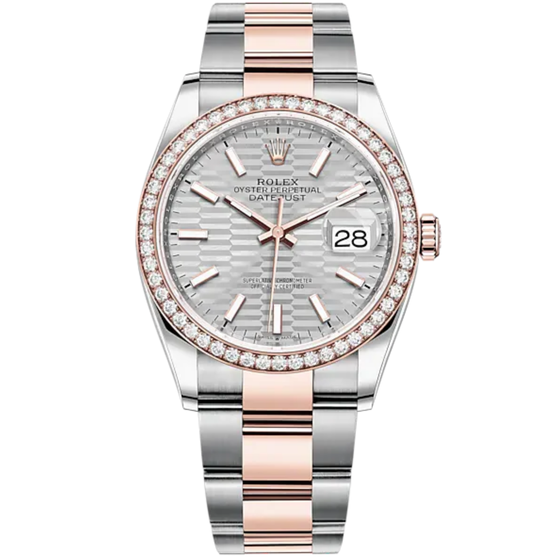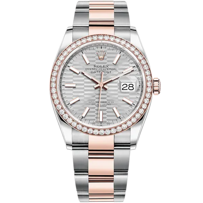 Datejust 36 36mm Oyster Bracelet Oystersteel and Everose Gold with Silver Fluted-Motif Dial Diamond-Set Bezel