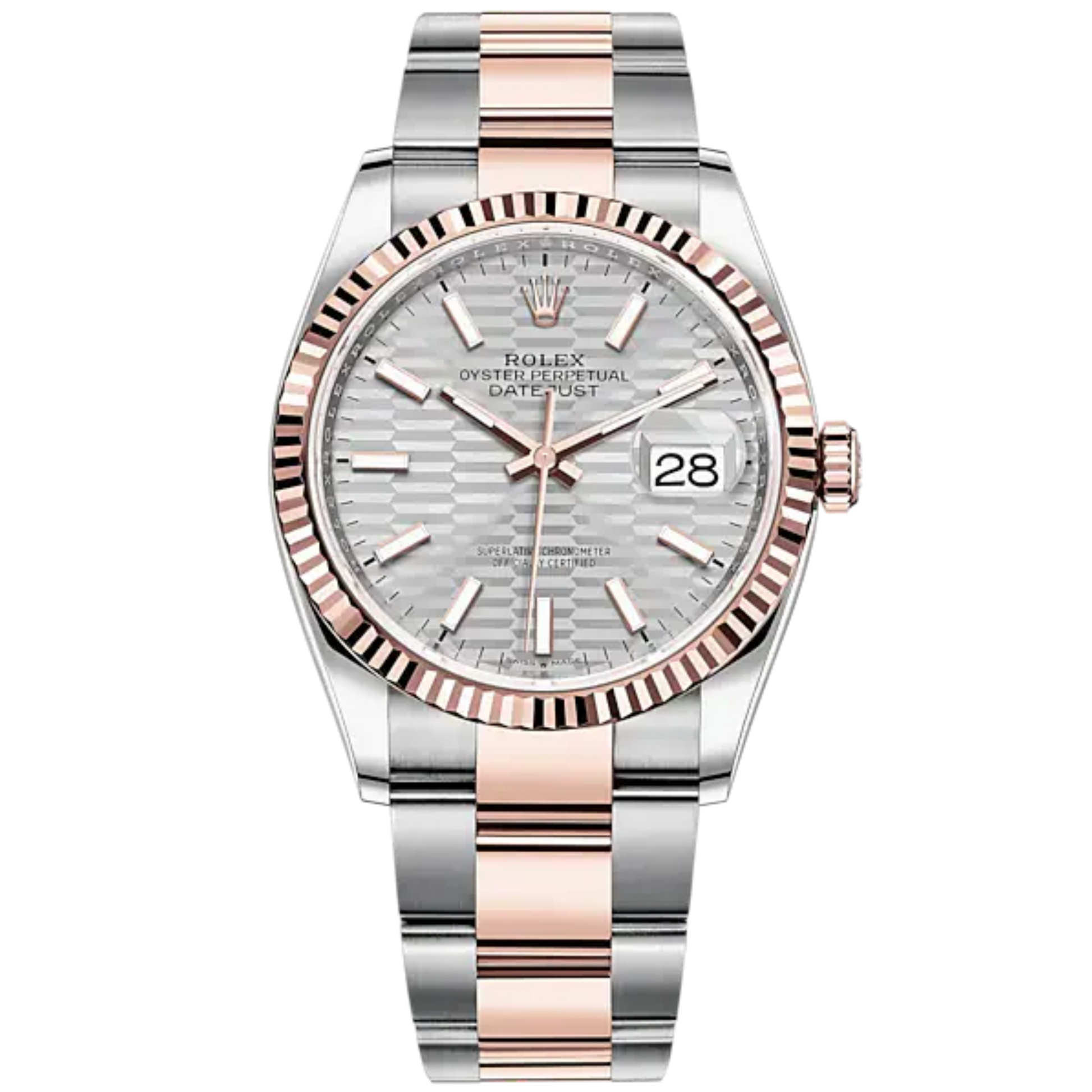 Datejust 36 36mm Oyster Bracelet Oystersteel and Everose Gold with Silver Fluted-Motif Dial Fluted Bezel