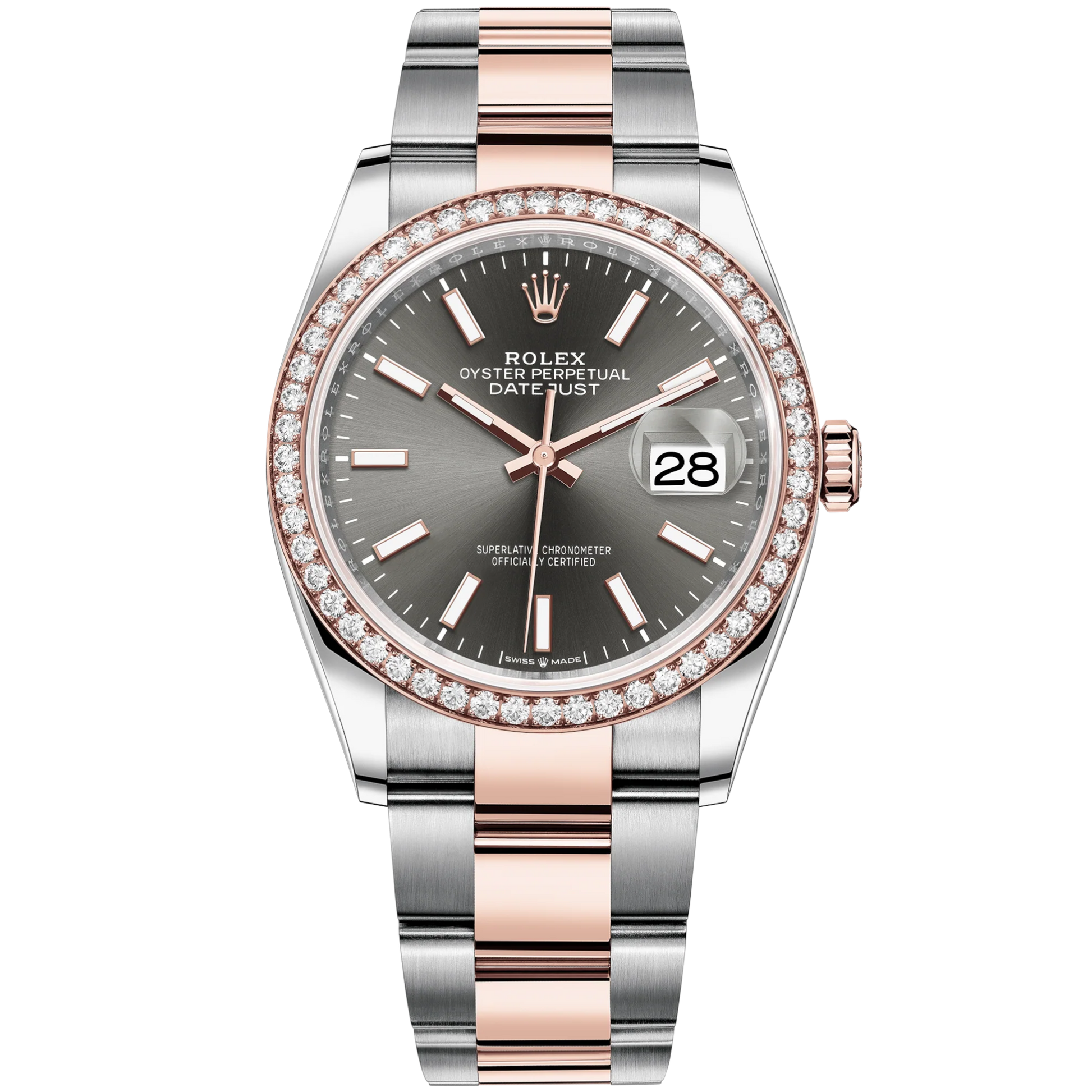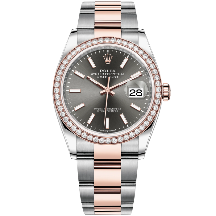 Datejust 36 36mm Oyster Bracelet Oystersteel and Everose Gold with Slate Dial Diamond-Set Bezel