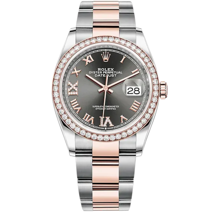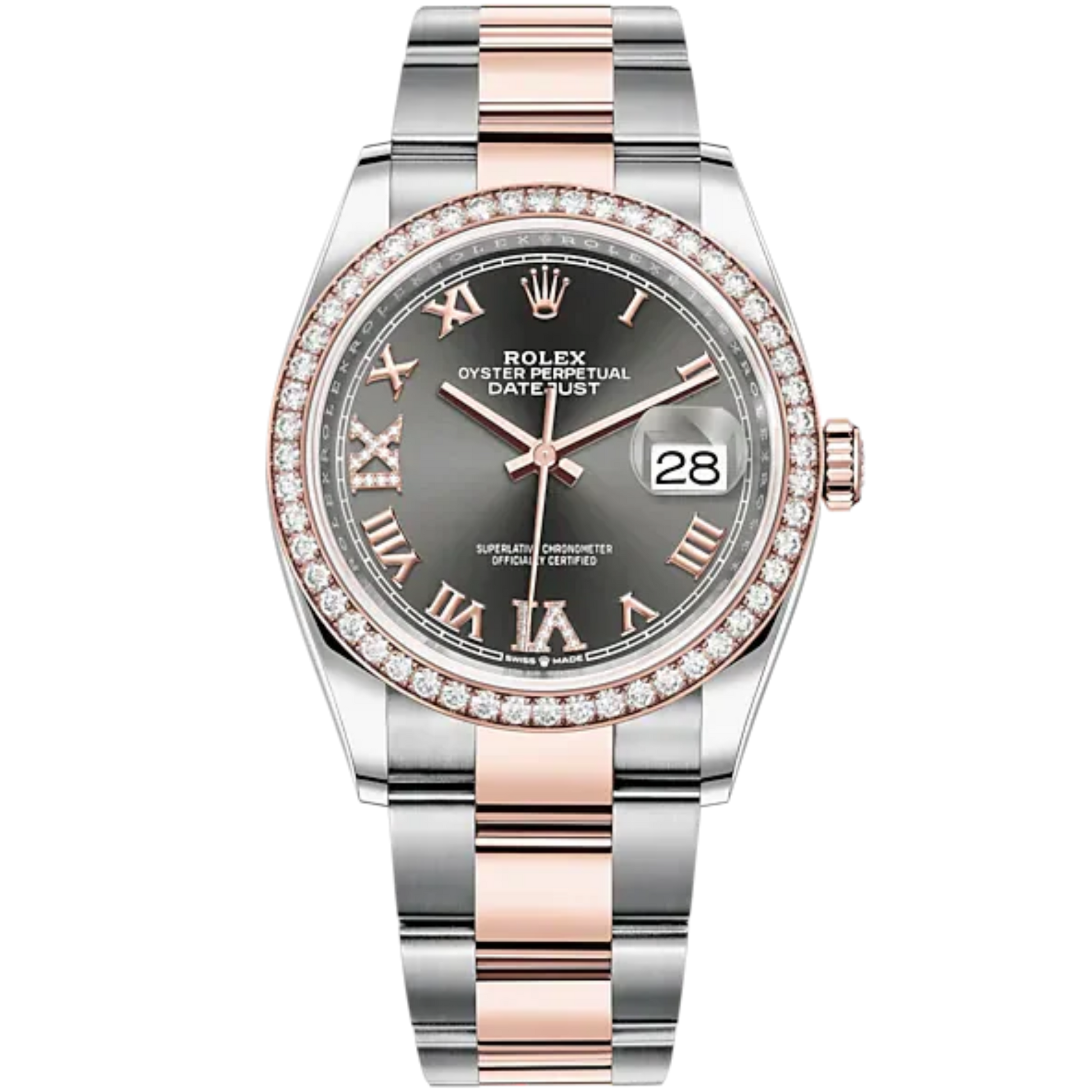 Datejust 36 36mm Oyster Bracelet Oystersteel and Everose Gold with Slate Dial Diamond-Set Bezel