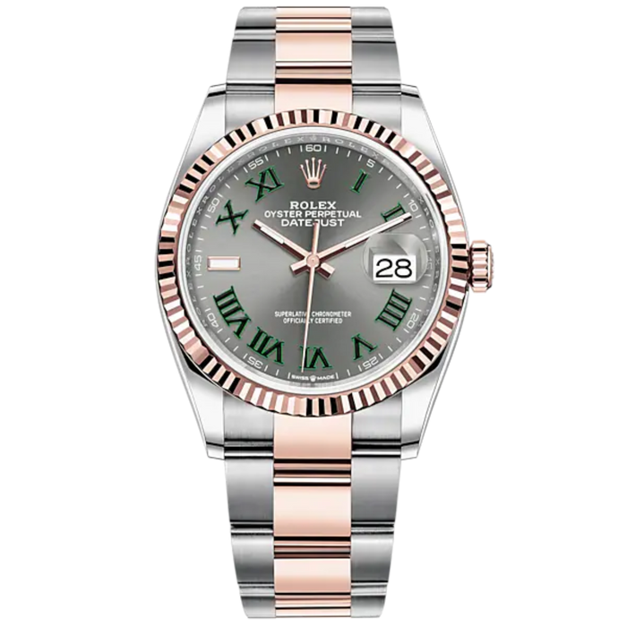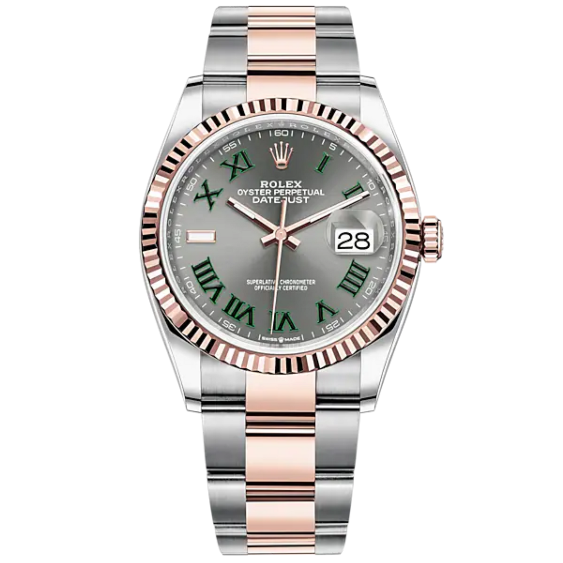 Datejust 36 36mm Oyster Bracelet Oystersteel and Everose Gold with Slate Dial Fluted Bezel