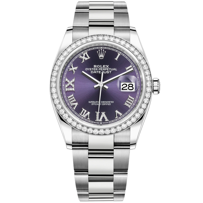 Datejust 36 36mm Oyster Bracelet Oystersteel and White Gold with Aubergine Diamond Dial Diamond-Set Bezel
