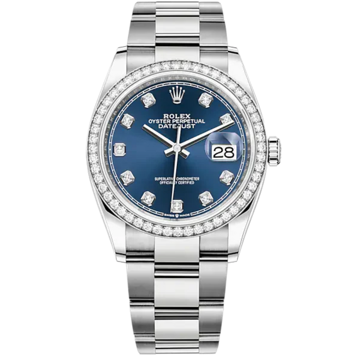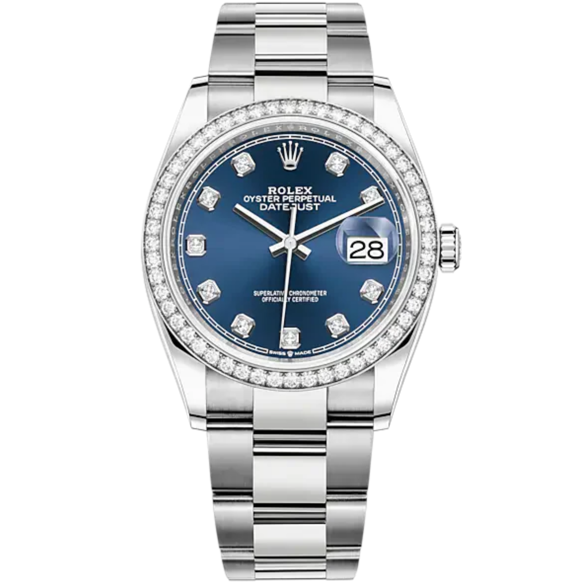 Datejust 36 36mm Bracelet Oystersteel and White Gold with Bright Blue Diamond-Set Dial Diamond-Set Bezel