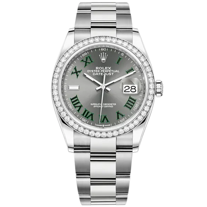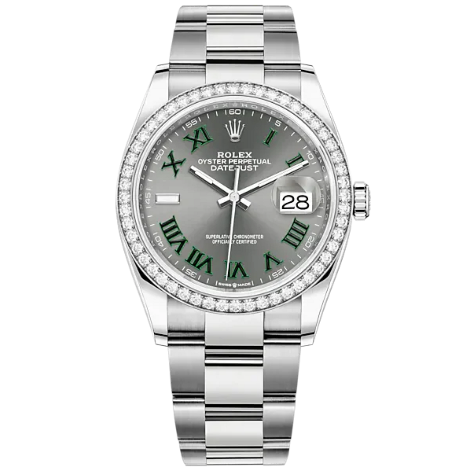 Datejust 36 36mm Oyster Bracelet Oystersteel and White Gold with Slate Dial Diamond-Set Bezel