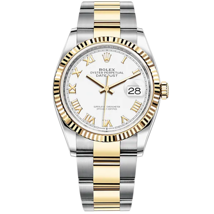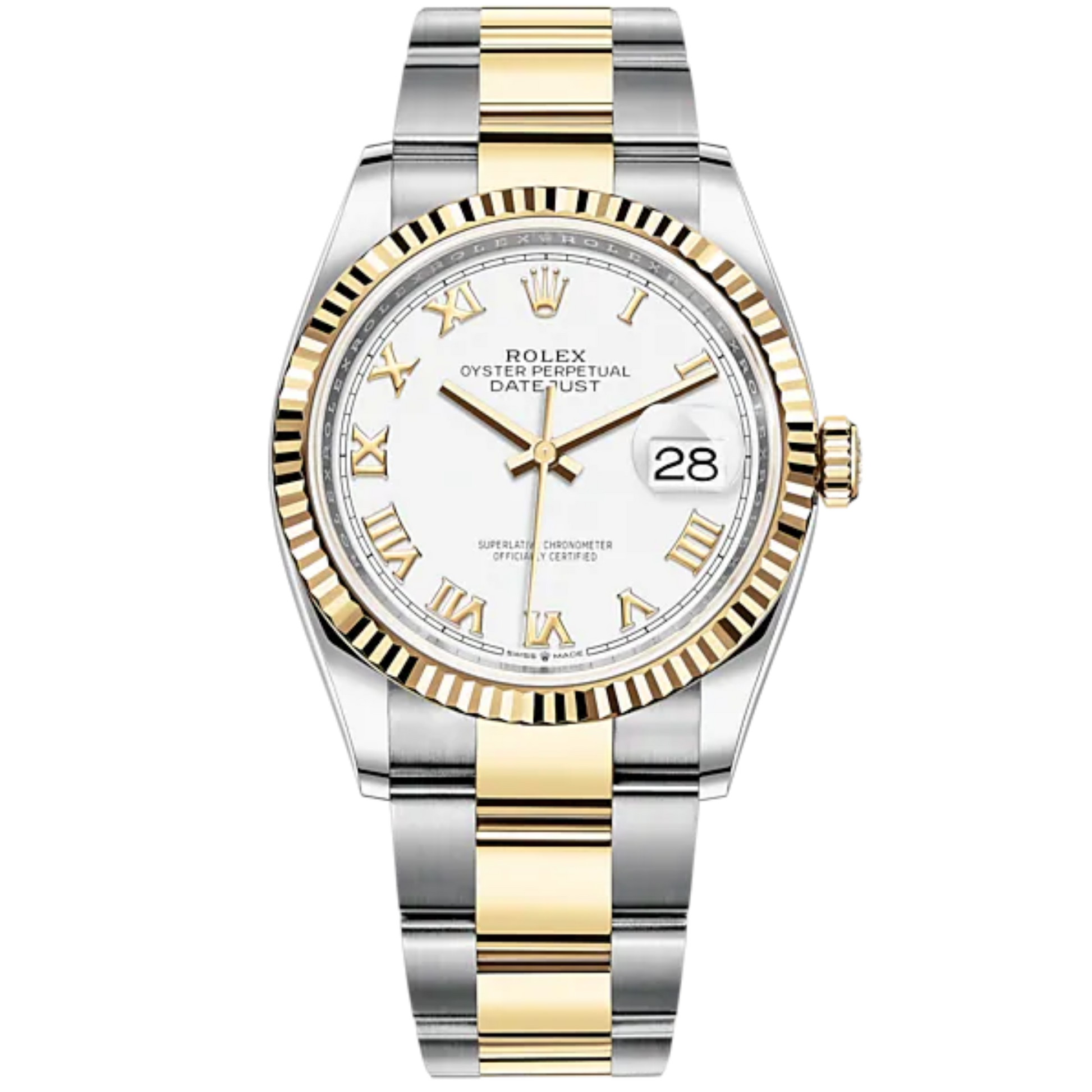 Datejust 36 36mm Oyster Bracelet Oystersteel and Yellow Gold with White Dial Domed Bezel